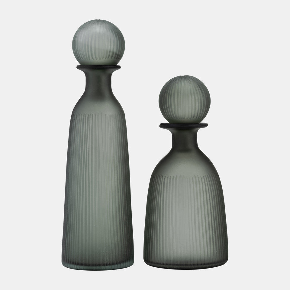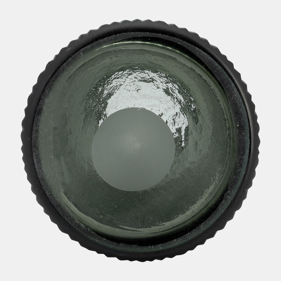 This 17" glass vase with lid is ideal for elegant floral displays and stylish decor accents, enhancing any room or office with sophistication.