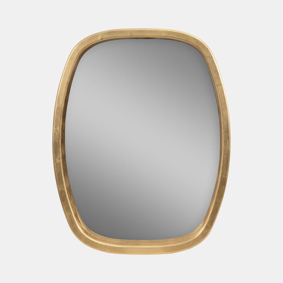 Brighten your space with this playful 36x45 Gold Leaf Mirror. Featuring a metallic gold finish on wood and MDF, it blends modern style with serene vibes to add charm and shine wherever it hangs.