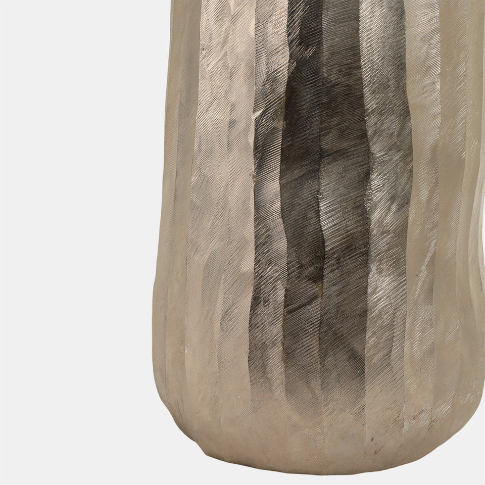 Make a bold statement with this 58" Rounded Etched Metal Floor Vase in silver. Its elegant design enhances any room, adding a touch of modern sophistication. Perfect for elevating your décor instantly.