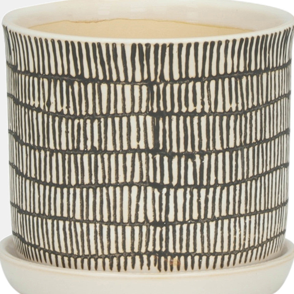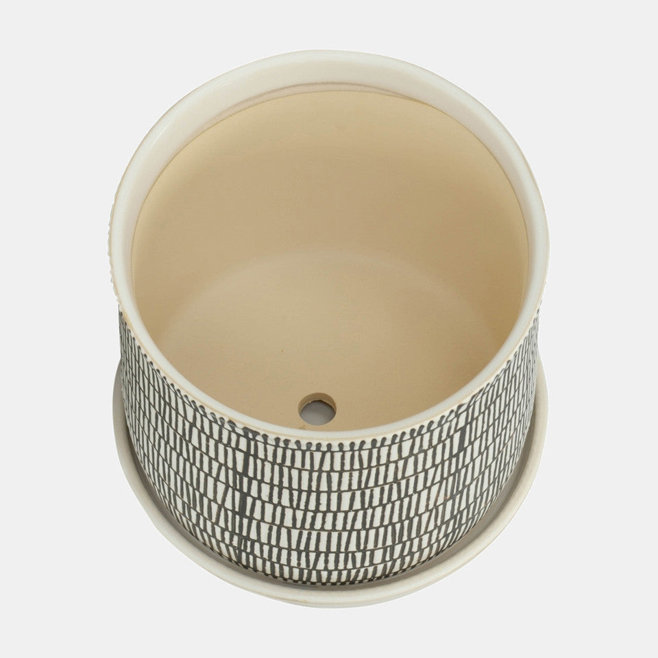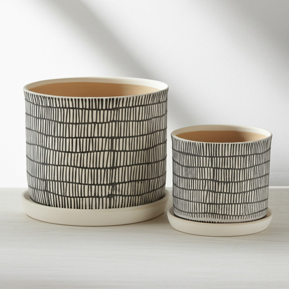 This set of ceramic planters, finished in a speckled beige and brown glaze, brings a refined, earthy warmth to your home. Included saucers ensure both style and functionality.