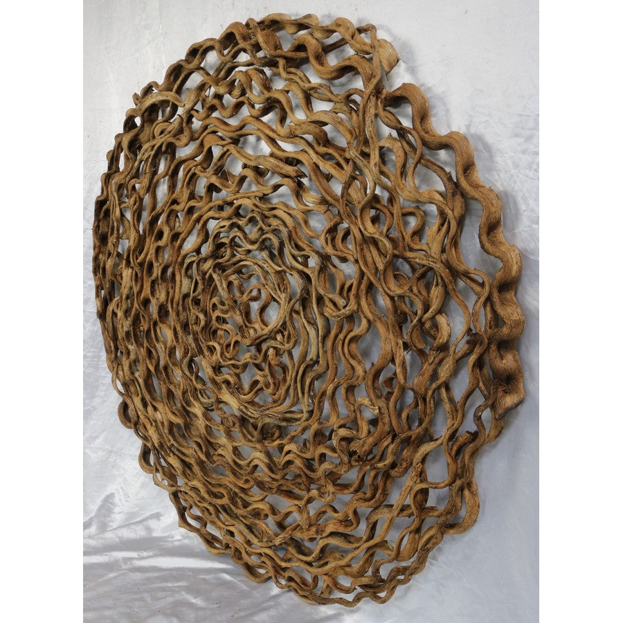 Type Of Wood: Liana (A liana is a long-stemmed, woody vine rooted in the soil at ground level and uses trees, as well as other means of vertical support, to climb up to the canopy in search of direct sunlight.[1] The word liana does not refer to a taxonomic grouping, but rather a habit of plant growth – much like a tree or shrub. Hand-woven from liana vines, the circle of eternity wall hanging transcends mere decoration. Its perfect form whispers tales of endless time, a serene symbol crafted with patient hands. More than art, it’s a window to tranquility, whispering beauty and interconnectedness.